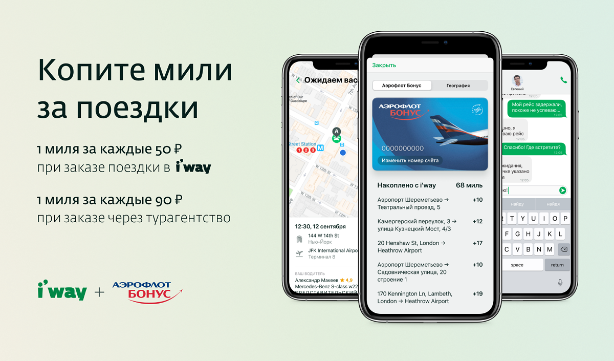 Международная трансферная компания i’way интегрировала в приложение i’way возможность получения миль по программе «Аэрофлот Бонус». Теперь каждый участник программы «Аэрофлот Бонус» может получить мили за поездки.