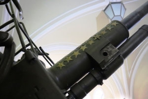 По-новому в экспозиционное пространство вписаны различные образцы крупных артиллерийских орудий, как например, 37-мм автоматическая зенитная пушка обр. 1939 г., боевым расчетом которой командовал старший сержант И.А. Шалов. На ее стволе 18 жестяных пятиконечных звездочек по количеству сбитых фашистских самолетов. Это второе по результативности орудие Великой Отечественной войны (в среднем советские зенитки сбивали 4–6 вражеских самолетов).