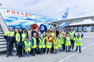 Визит в аэропорт нанесли 22 участника — дети сотрудников воздушной гавани и победители творческого конкурса авиакомпании «Россия» и ФК «Зенит» «Вместе к новым победам!».